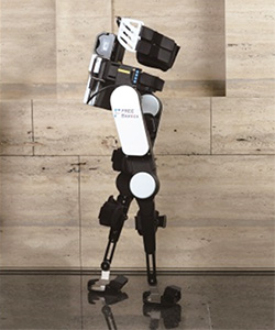 2WA-EXO, a wearable walking assistive exoskeleton robot that allows people with lower extremity paralysis to stand and walk independently. |